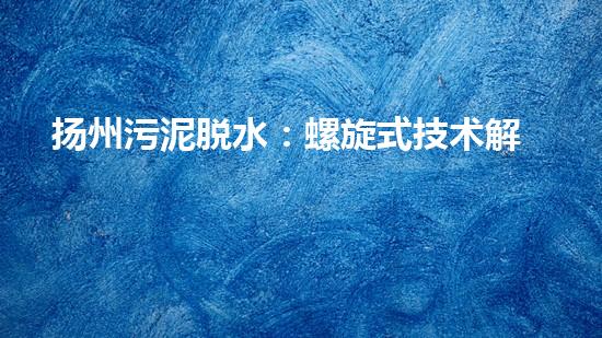 扬州污泥脱水:螺旋式技术解密及应用实践