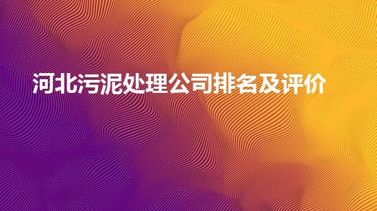 河北污泥处理公司排名及评价研究