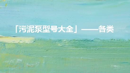 「污泥泵型号大全」——各类污泥泵型号详解及选购指南