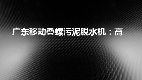 广东移动叠螺污泥脱水机:高效处理污泥的利器