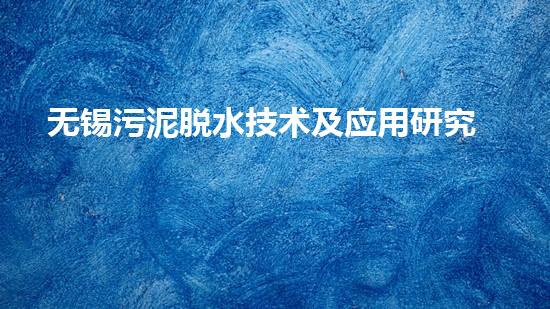 无锡污泥脱水技术及应用研究