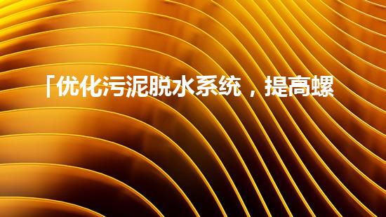 「优化污泥脱水系统,提高螺旋式污泥脱水效率」