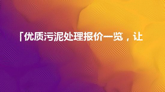 「优质污泥处理报价一览,让环保更经济实用」