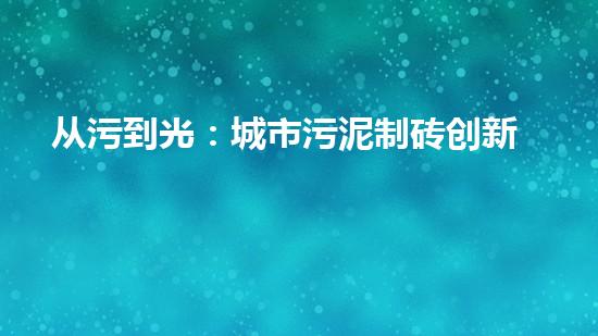 摘要:随着城市污染日益加剧,环保越来越被人们所关注。从污到光:城市污泥制砖创新工艺流程详解介绍了一种新的污泥处理、利用方式,解决了很多人关心的环境问题。本文将从前言、工艺流程、原理、优点和市场需求等方...