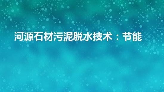 河源石材污泥脱水技术:节能高效的绿色环保选择
