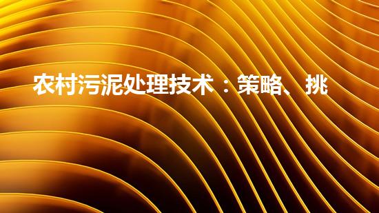 农村污泥处理技术:策略、挑战与前景
