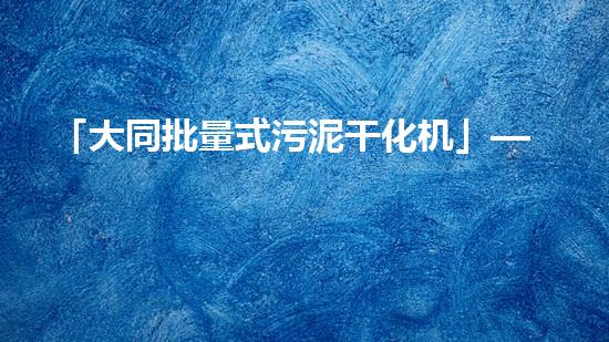 「大同批量式污泥干化机」——污泥处理新方式