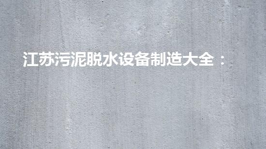 江苏污泥脱水设备制造大全:技术、性能、优势全面解析