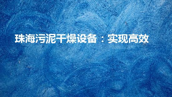 珠海污泥干燥设备:实现高效能再利用的环保处理新方案