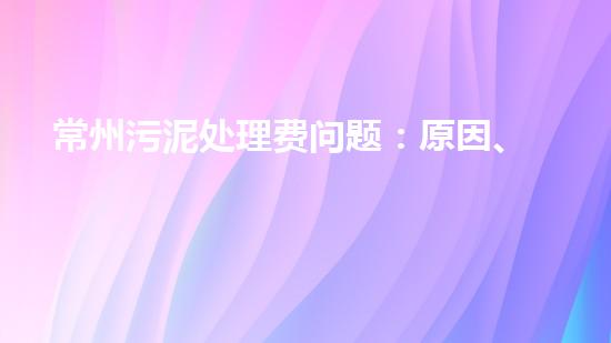 常州污泥处理费问题:原因、影响与解决方案