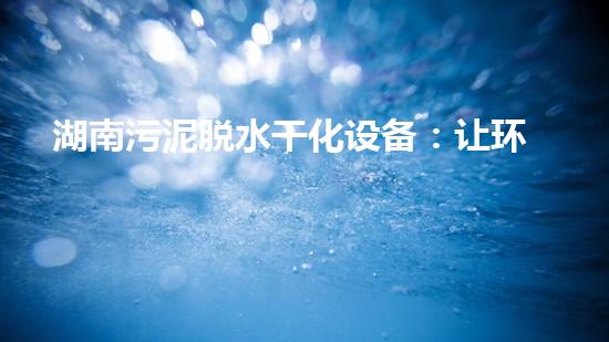 湖南污泥脱水干化设备:让环保处理更高效