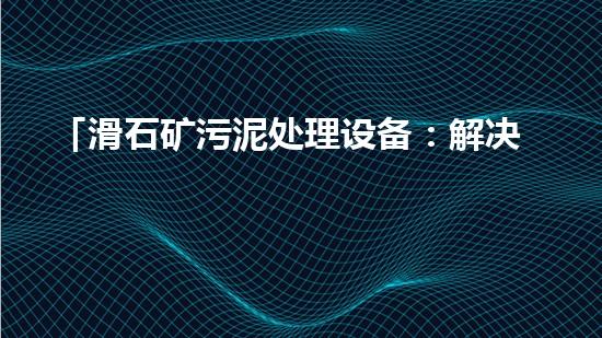 「滑石矿污泥处理设备:解决污染难题」
