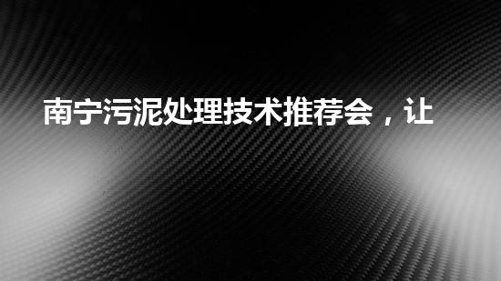 南宁污泥处理技术推荐会,让污泥“化劣为优”