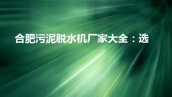 合肥污泥脱水机厂家大全:选对厂家,舒心脱水