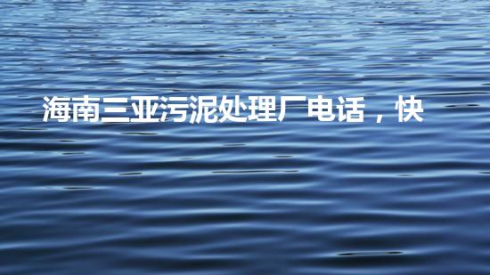 海南三亚污泥处理厂电话,快速咨询!