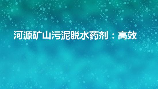 河源矿山污泥脱水药剂:高效、绿色、经济