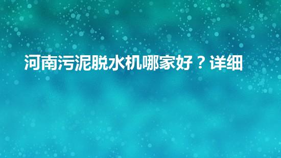 河南污泥脱水机哪家好?详细评测比较!
