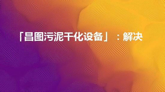 「昌图污泥干化设备」:解决污泥处理难题的智能选择