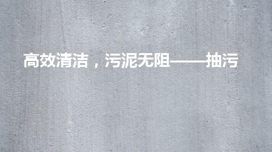 高效清洁,污泥无阻——抽污泥车的应用与发展