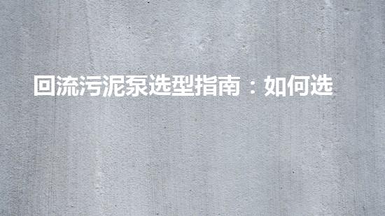 回流污泥泵选型指南:如何选用最适合的回流污泥泵?
