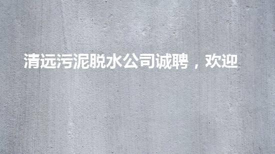 清远污泥脱水公司诚聘,欢迎来电咨询!