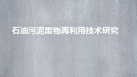石油污泥废物再利用技术研究及应用探讨