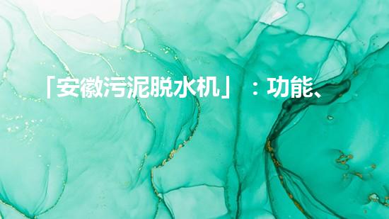 「安徽污泥脱水机」:功能、应用与优势