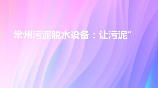 常州污泥脱水设备:让污泥“变废为宝”的关键