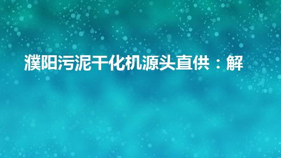 濮阳污泥干化机源头直供:解决污泥处理难题