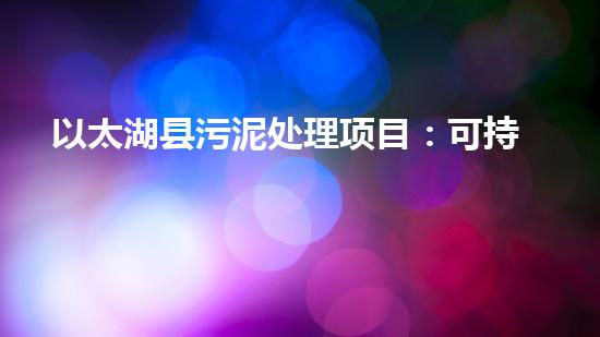 以太湖县污泥处理项目:可持续、高效、绿色的解决方案