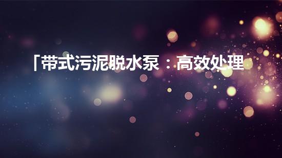 摘要:本文主题为带式污泥脱水泵:高效处理污泥的利器,介绍了该设备的优点以及在污泥处理中的应用情况,为读者提供了相关背景信息。一、带式污泥脱水泵的工作原理带式污泥脱水泵是一种将高含水率污泥经过过滤,达到...