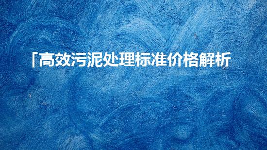 徐汇区污泥处理价格调查:解析处理成本及市场变化