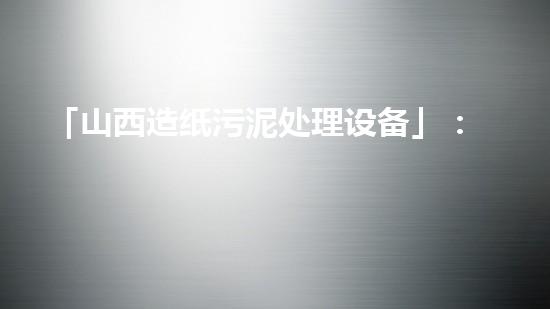 「山西造纸污泥处理设备」:高效解决造纸业污泥问题