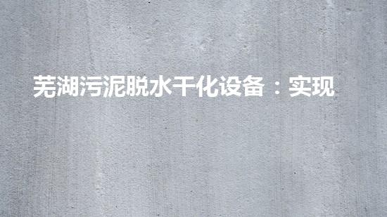 芜湖污泥脱水干化设备:实现废弃物资源化回收的利器