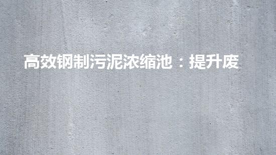 高效钢制污泥浓缩池:提升废水处理效率的利器