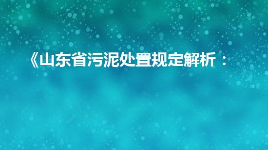 《山东省污泥处置规定解析:合规运营与技术推广》