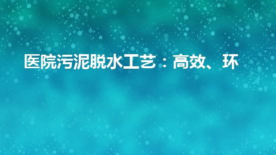 医院污泥脱水工艺:高效、环保的解决方案