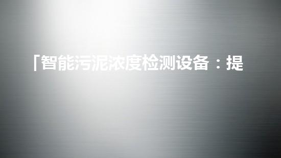 「智能污泥浓度检测设备:提高环保效率的利器」