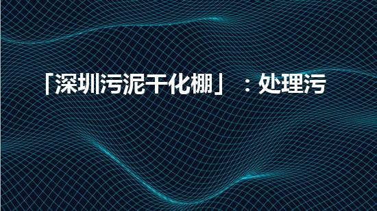 「深圳污泥干化棚」:处理污泥的新方法
