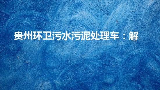 贵州环卫污水污泥处理车:解决城市环境问题的利器