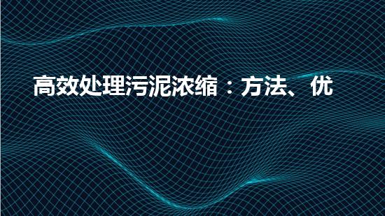 摘要:污泥的处理一直是环境管理中的重要任务,高效处理污泥浓缩可以有效减少处理负担及成本。本文将介绍高效处理污泥浓缩的方法、优势及应用探析。