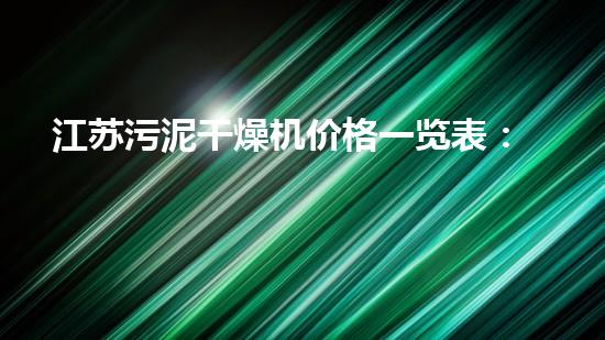 江苏污泥干燥机价格一览表:可靠、高效、环保的选择