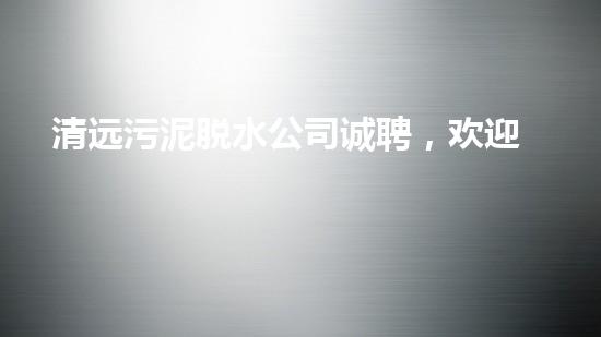 清远污泥脱水公司目前招聘以下职位: