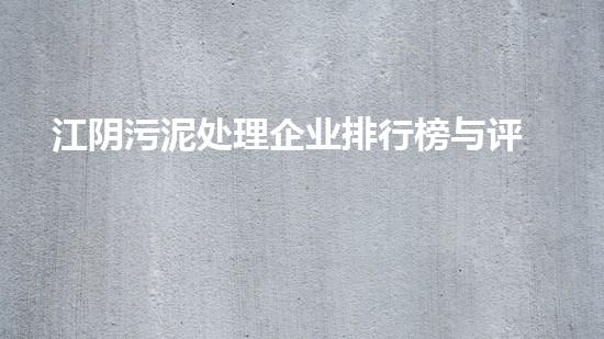 江阴污泥处理企业排行榜与评测报告主要就是对于江阴地区的污泥处理企业进行排行和评测,并且对于其处理技术进行详细介绍和分析。