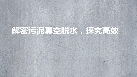 除了压力过滤和离心脱水外,真空技术是另一种常用的污泥脱水技术。其操作原理是在设备中创造低压气氛,使得水从污泥体中脱离。真空脱水技术具有脱水效率高,节省能源和低废水等优点。也逐渐成为城市污水处理和污泥干化处理中的一种常用技术。