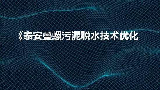 本文主要介绍《泰安叠螺污泥脱水技术优化与应用探索》,探讨了叠螺脱水技术在处理污泥方面的优势和存在的问题,以及优化方案和实际应用效果。本文力求以专业的角度深入剖析这一技术,为相关领域人士及广大读者提供参考意见。