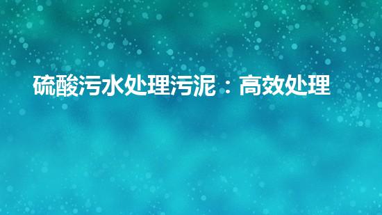 硫酸污水处理污泥是工业污水处理中常见的一个过程。本文将针对硫酸污水处理污泥的高效处理方案,提出从四个方面进行详细分析,为读者提供深入的专业知识。