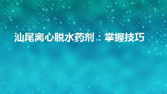 掌握汕尾离心脱水药剂的使用技巧,对于有效地利用汕尾离心脱水药剂发挥其治水利器的作用非常重要。以下是掌握汕尾离心脱水药剂技巧的几个方面: