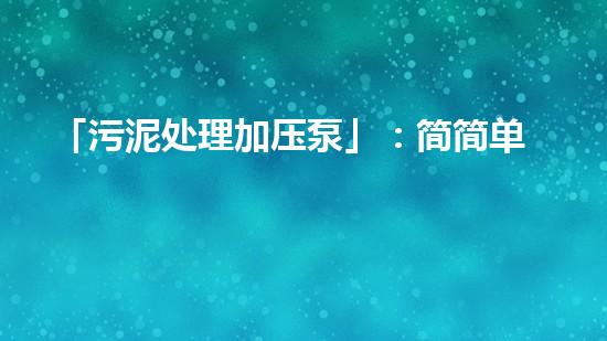随着城市污水处理工业的发展,污泥成为一个日益严重的问题。传统的处理方法效率低、成本高,不仅浪费资源,而且还会对环境造成污染。因此,本文将介绍一种新型污泥处理加压泵,以简单高效的方法处理污泥,旨在吸引读者的兴趣,提供背景信息,并将介绍四个方面的详细专业深入的阐述。