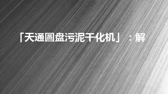「天通圆盘污泥干化机」:解决污泥问题的得力工具
